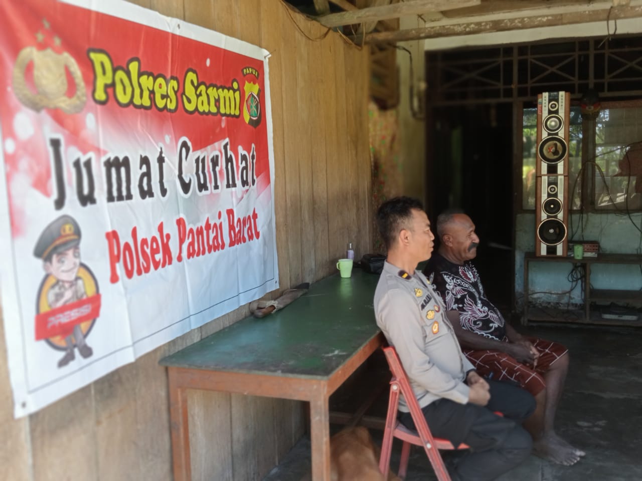 Sarmi – Bertempat di kampung Waim Distrik pantai barat guna menjalin silaturahmi dengan masyarakat Kapolsek Pantai Barat melaksanakan kegiatan Jumat curhat yang di laksanakan setiap minggunya . Jumat (12/05/23) Siang.