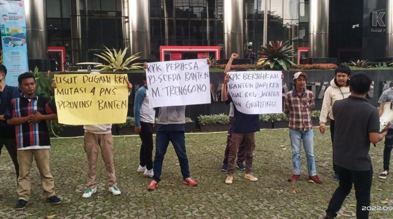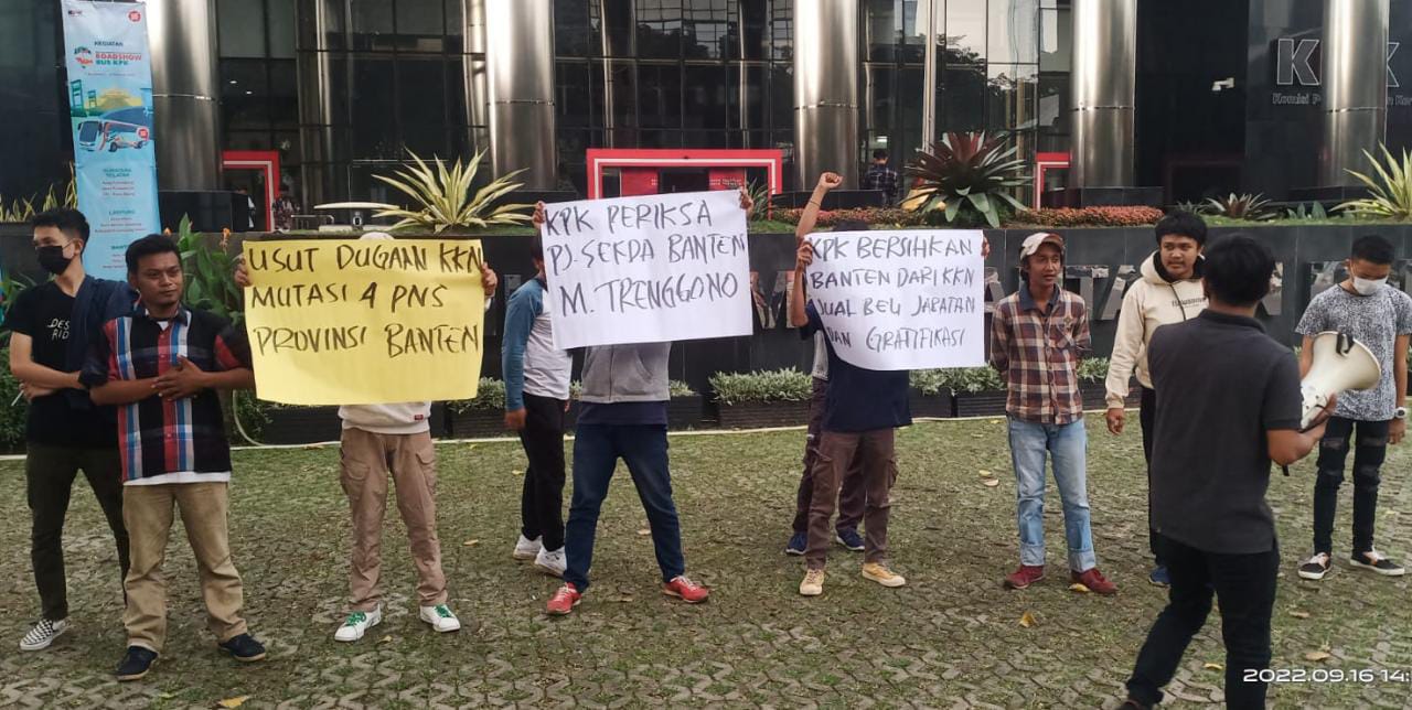 “Pj Sekda Banten melakukan mutasi 4 PNS secara diam-diam sehingga menimbulkan banyak kecurigaan yang mengarah pada terjadinya gratifikasi dan KKN yang harus diusut oleh KPK,” kata Andi dalam orasinya depan KPK.