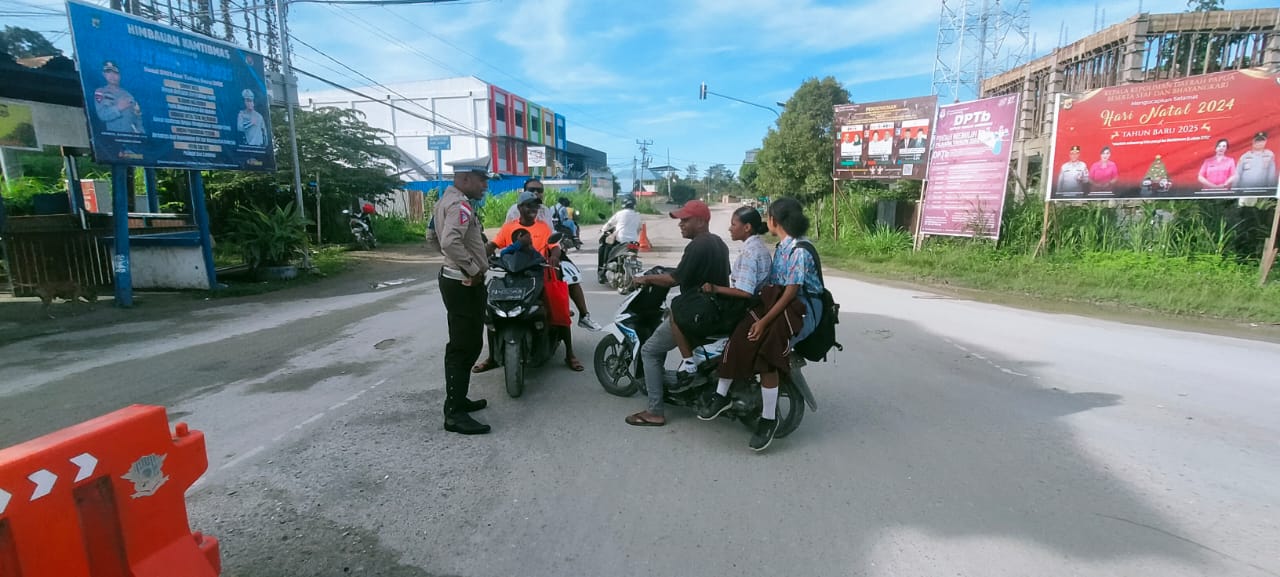 Guna mengantisipasi kemacetan lalu lintas di pagi hari, Sat Lantas Polres Sarmi rutin gelar Strong Point