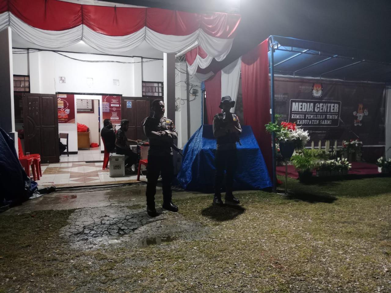 Hari Ke 3 (tiga)pendaftaran, personel Polri dan TNI masih di siagakan di Kantor KPU Sarmi