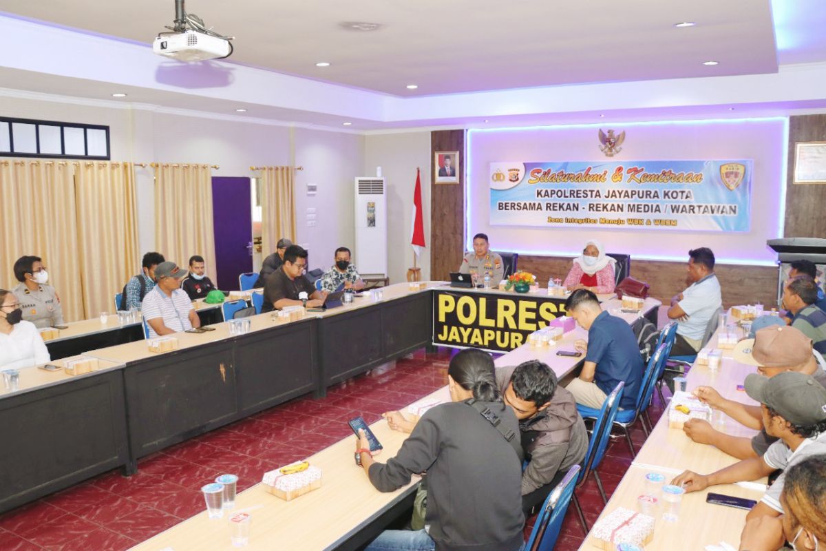 Polresta Jayapura Kota,- Jalin silaturahmi sebagai mitra Polri, Kapolresta Jayapura Kota AKBP Dr. Victor D. Mackbon, S.H., S.IK., M.H., M.Si gelar Silaturahmi dan Kemitraan bersama Rekan Media / Wartawan bertempat di Aula Mapolresta, Selasa (28/6) siang.