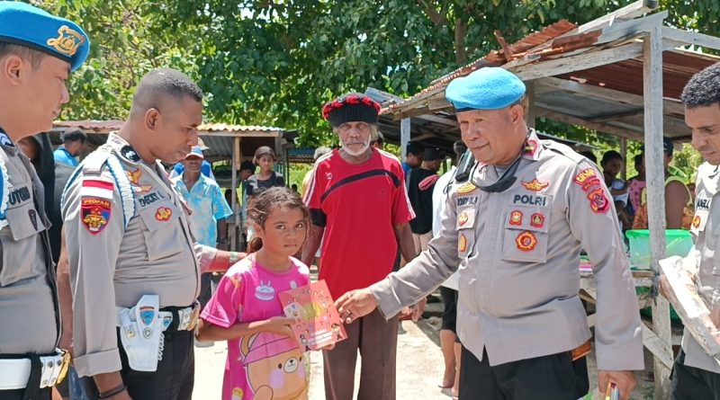 Papua – Jajaran Polres Kepulauan Yapen melalui Polsek Poom bersama Sie Propam melakukan pembagian buku kepada anak-anak dalam “Polri Peduli Budaya Literasi Distribusi Buku Sampai Pelosok Nusantara” bertempat di KM Sabuk Nusantara 100, Rabu (20/9/2023).