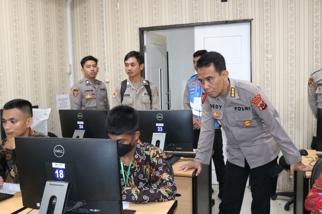 Jayapura – Bertempat di Aula Assessment Center Polda Papua dan SMP N 6 Jayapura telah dilaksanakan Tes CAT Akademik Penerimaan Terpadu Tamtama Polri T.A 2023 Polda Papua yang dihadiri oleh Kabidkum Polda Papua Kombes Pol Dedy Sumarsono, S.I.K., M.H, Selasa (6/6).