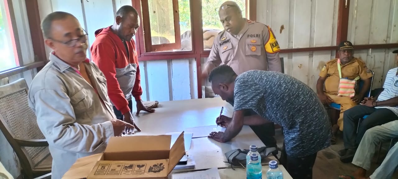 Sarmi – Kapolsek Tor Atas Ipda Hendrik Y.Peday menghadiri pelaksanaan Pembayaran Kompenisasi Hak Ulayat Masyarakat Adat yang bertempat di Kampung Nengke,Distrik Pantai Timur Barat. Kamis (26/9/2024)