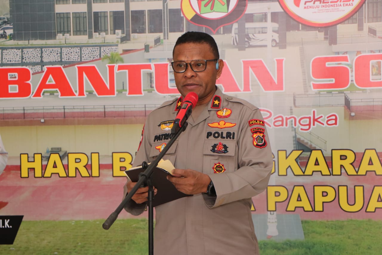 Dalam sambutannya, Wakapolda Papua menyampaikan bahwa dalam bulan bakti Polri ini, Polda Papua mengadakan berbagai kegiatan sosial, termasuk pembagian bantuan sosial, bakti religi, bedah rumah, dan pembangunan tempat air bersih di wilayah-wilayah yang mengalami kesulitan sumber air.