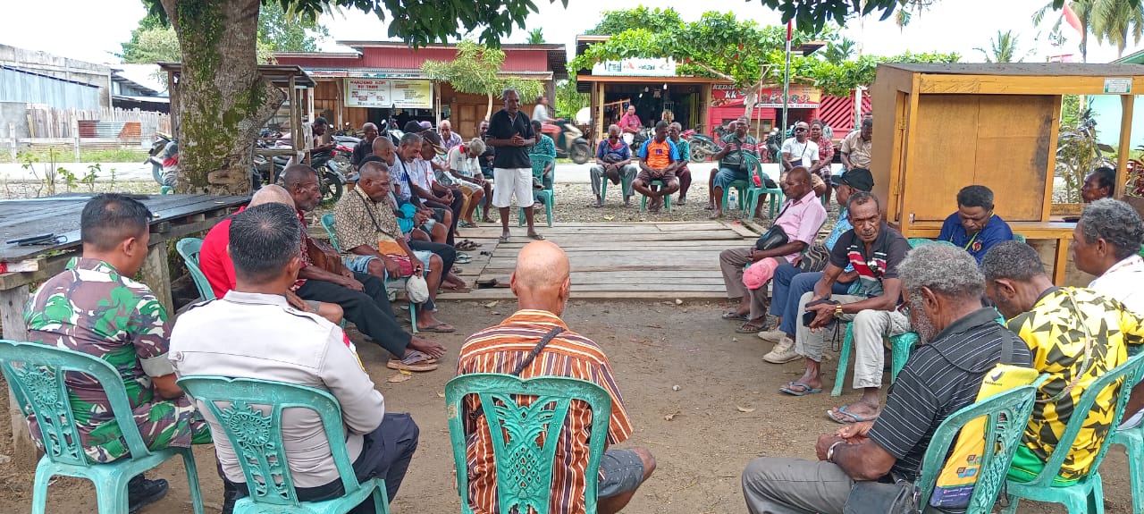 Sarmi – Bertempat di Jalur 4 Kampunng Kiren Distrik Bonggo, telah berlangsung pertemuan Kapolsek Bonggo bersama pemilik hak ulayat yang dipimpin langsung oleh Ipda Yustus Maudul, SE., M.Si (Kapolsek Bonggo) dan dihadiri sekitar 75 orang.