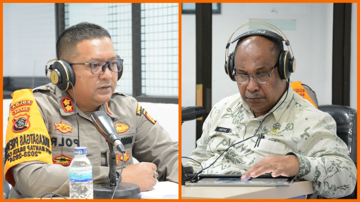 Papua – Polda Papua, bersama Forkopimda, kembali hadir dalam Dialog Interaktif melalui program ‘Polisi Menyapa’, di Stasiun LPP RRI Kota Jayapura. (19/02). Acara tersebut melibatkan dua narasumber utama, yaitu Kepala BMKG Wilayah V Papua, Justuz Rumakiek, dan Wadir Samapta Polda Papua, AKBP Adiono Dwi W, S.I.K., M.Ap.