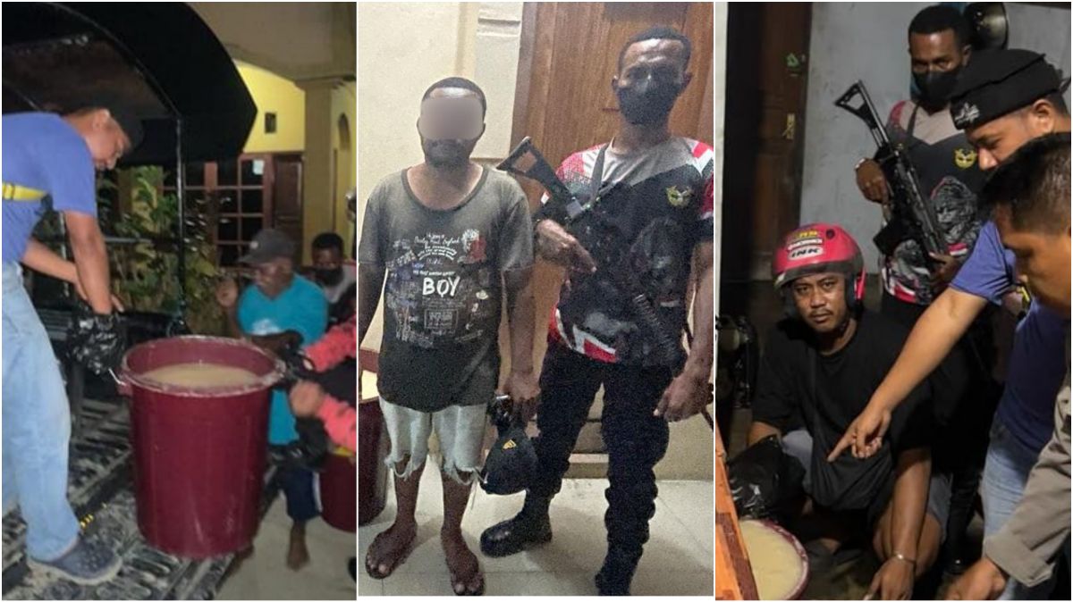 Dengan didampingi Kanit Reskrim Polsek Abepura Ipda Aditama Tantowi, M.K, S.Tr.K dan Panit Opsnal Ipda Edwin Ayomi, Kapolsek Abepura AKP Lintong Simanjuntak berhasil mengamankan pelaku bersama barang buktinya berupa miras ilegal jenis Ballo yang siap edar di lokasi pembuatan pelaku TI.