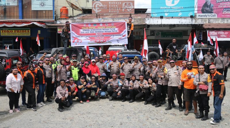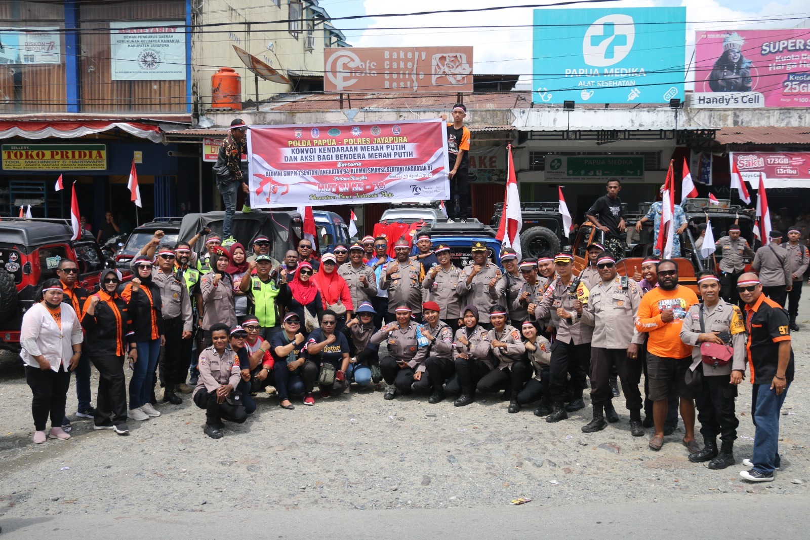 Polres Jayapura Gelar Konvoi Kendaraan Merah Putih dan Bagikan 1.708 Bendera Merah Putih