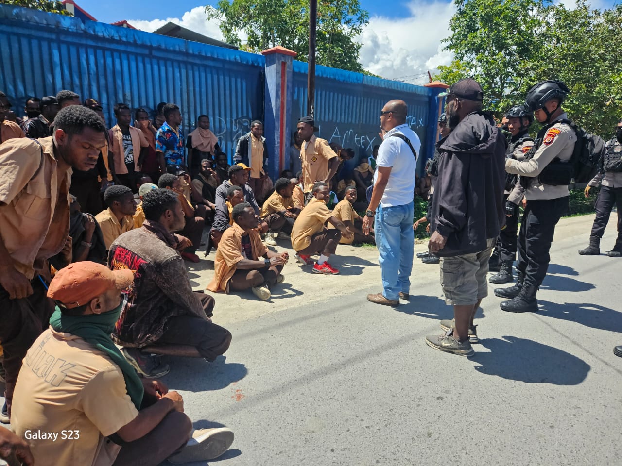 Wamena – Aparat Kepolisian Resor Jayawijaya melerai adanya dua kelompok pelajar dari dua sekolah SMK yang melakukan aksi saling serang dengan cara melempar batu di Jalan Bhayangkara Wamena, Jumat (03/11) pagi.