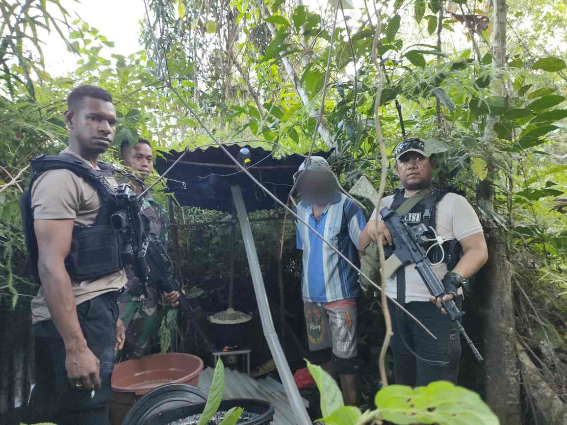 Mappi – Berantas peredaran miras di wilayahnya Kapolsek Asgon Ipda Hendrik Mendaun gandeng Satgas Yonif 125 Sim’bisa, lakukan razia miras di lokasi yang telah dicurigai sebagai tempat pembuatan miras lokal jenis kaki anjing, Selasa (09/07).