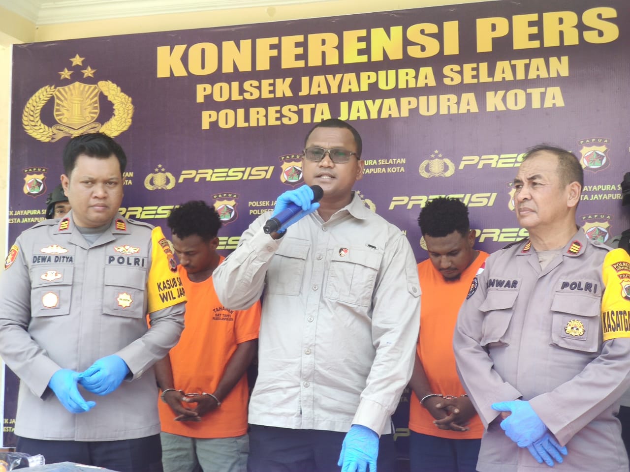 Hal tersebut diungkapkan Kapolresta Jayapura Kota melalui Kasat Reskrim Kompol Agus F. Pombos, S.I.K didampingi Kapolsek Jayapura Selatan AKP I Gede Dewa Aditya Krishnanda, S.I.K dan Kasi Humas Polresta AKP Muh. Anwar saat menggelar Press Conference kepada awak media bertempat di Mapolsek Jayapura Selatan, (16/4).