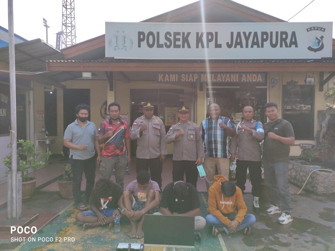 “Merespon laporan tersebut, Unit Reskrim Polsek KPL Jayapura yang dipimpin Ipda Wajedi, S.H., M.H kemudian melakukan penyelidikan di lapangan dan berhasil mengantongi identitas para pelaku, hingga pada tanggal 12 Juni 2022 didapati informasi bahwa salah satu pelaku berada di Polres Sarmi karena tertangkap melakukan Pencurian,” ujar Kapolsek.