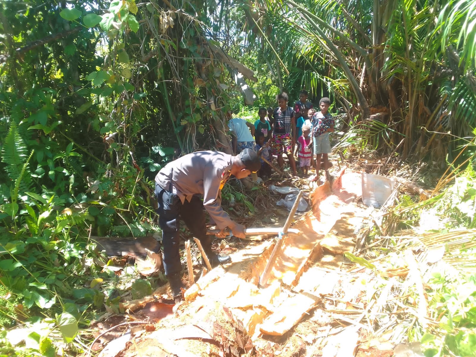 Diakhir obrolan Kasat Binmas dan Mama-mama membahas tentang Jumat Curhat, Ipda Naftali Rumpaidus mengajak Mama-mama untuk bersama-sama memangkur sagu yang siap dipanen.