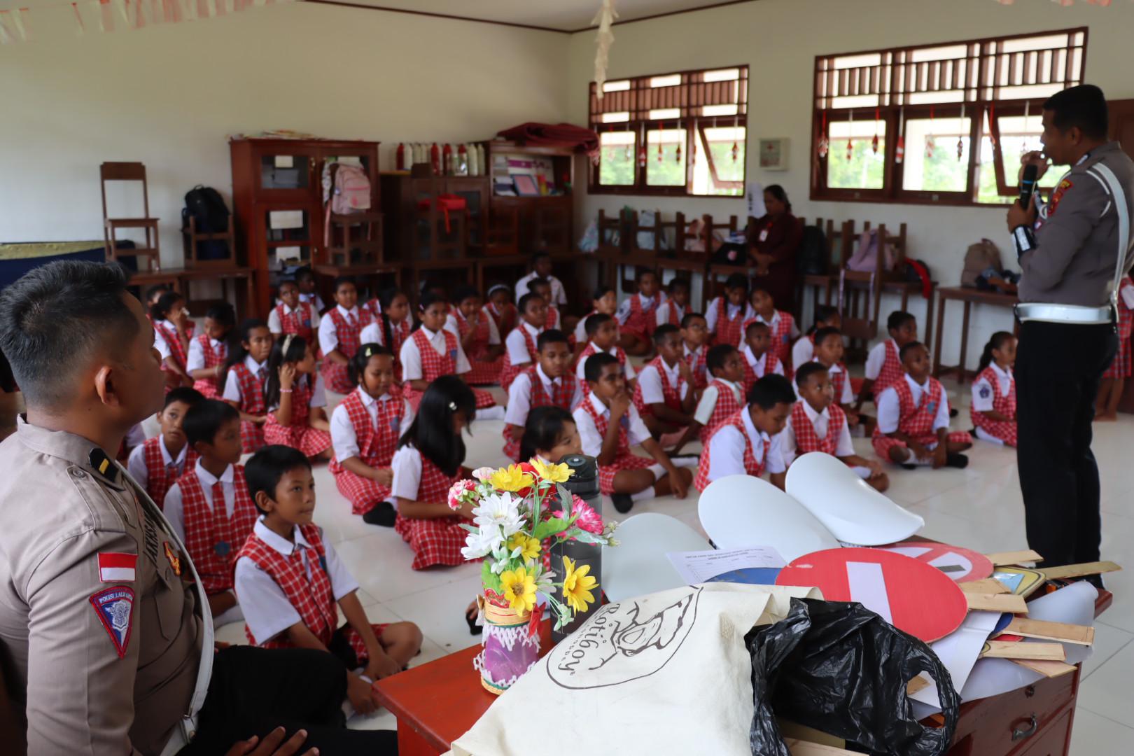Sarmi – Satuan Lalu Lintas Polres Sarmi Pada pukul 10.30 WIB bertempat di ruang kelas SD Katolik Santo Antonio Sarmi telah melaksanakan kegiatan sosialisasi Dikmas Lantas kepada para pelajar SD Katolik Santo Antonio Sarmi, Selasa (8/10/2024)