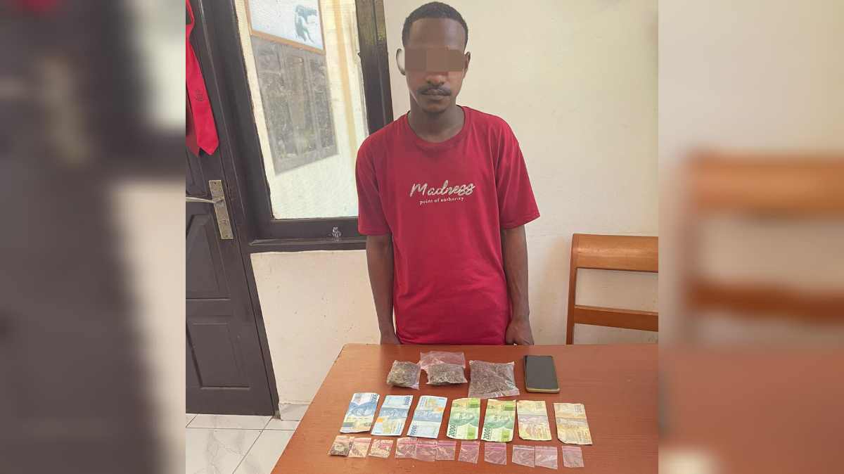 “Atas informasi tersebut, petugas Sat Narkoba Polres Sarmi mendatangi lokasi di jalan Neidam kelurahan Mararena dan melakukan pemantauan terhadap terduga pelaku yang saat itu sedang berdiri di depan warung, kemudian personil sat narkoba melakukan penangkapan dan menemukan 1 bungkus plastik ukuran sedang yang diduga berisi narkotika jenis Ganja yang disimpan di Saku celana kemudian terduga pelaku di bawa kerumahnya yang beralamat Pemda 1 Sarmi untuk dilakukan penggeledahan dan pada saat penggeledahan 1 bungkus plastik ukuran sedang dan 1 bungkus plastik ukuran kecil yang diduga berisi Narkotika jenis Ganja yang disimpan di saku jaket yang digantung di dalam kamar kemudian 1 bungkus plastik ukuran besar yang ditemukan di dalam lemari serta uang sebesar 193.000 (seratus sembilan puluh tiga) ribu”.ungkap Kasat