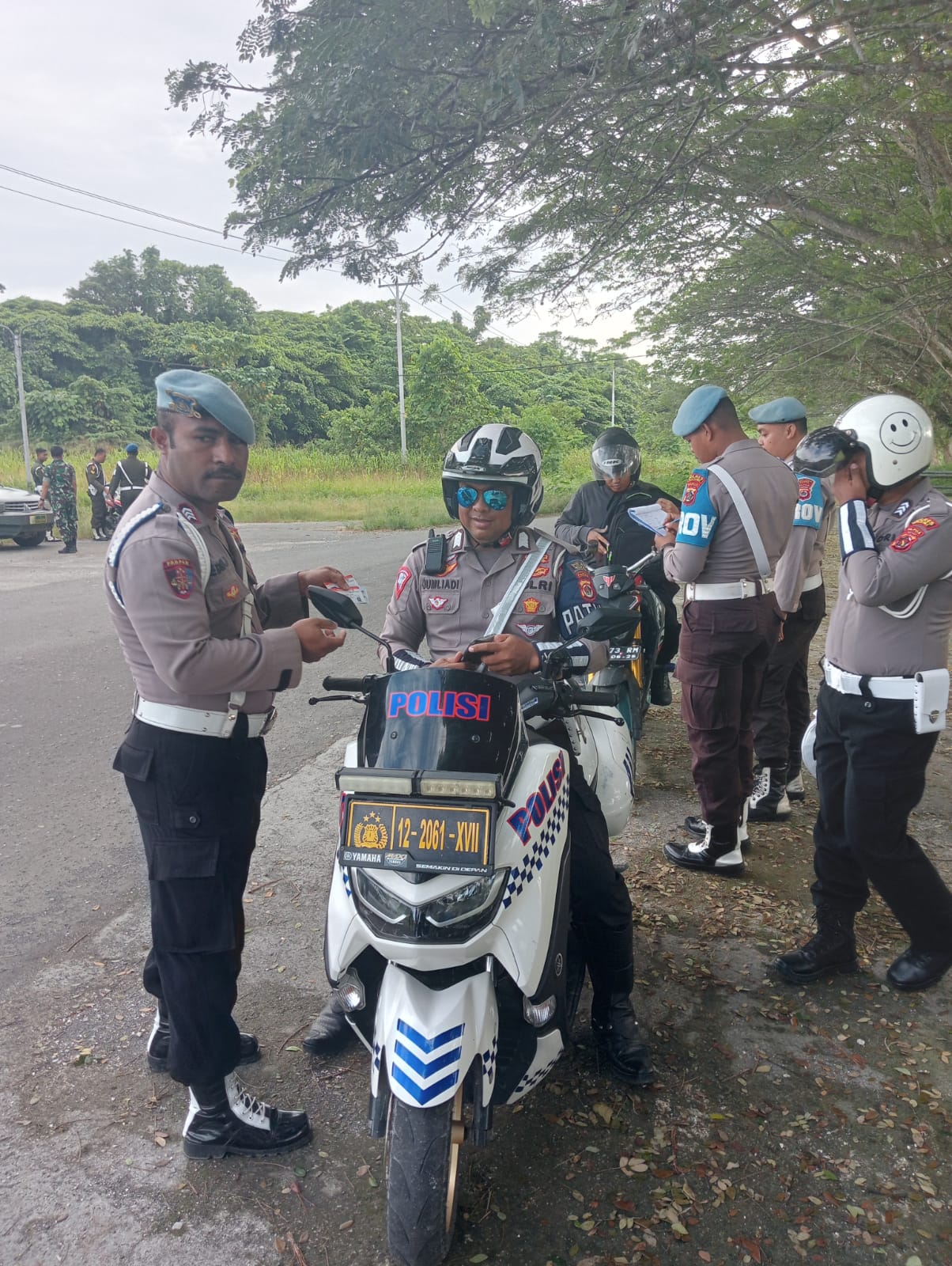 Lebih lanjut jelaskan Kasi Propam bahwa kegiatan razia gabungan yang di laksanakan pagi ini dengan sasaran kendaraan roda 4 maupun kendaraan roda 2, kelengkapan surat -surat kendaraan dan menertibkan plat kendaraan nomor dinas TNI maupun Polri . ” Jelas Ipda Y. Okoseray