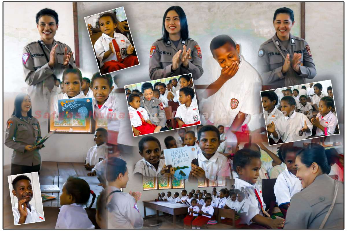 Rabu 28 Februari 2024, merupakan hari dimana para Srikandi Polri yakni, Brigpol Ita Sombo Allo (Polwan Ops Damai Cartenz-2024), Briptu Helma Jesika Koibur dan Briptu Devi Eka, S.H, (Polwan Polres Pegunungan Bintang), membawa senyuman dan buku cerita serta bingkisan untuk anak-anak. Mereka juga bernyanyi bersama dan menyuguhkan permainan yang menghibur.