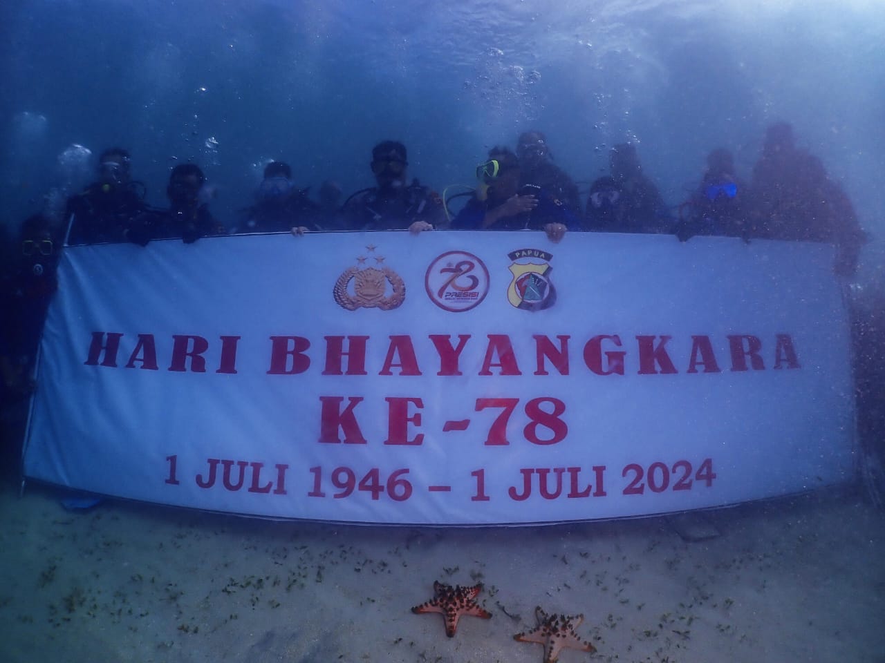 Di Papua, terdapat perayaan yang unik dan penuh makna, dilakukan oleh tim selam dari Persatuan Olahraga Selam Seluruh Indonesia (POSSI) Papua. Mereka memperingati Hari Bhayangkara dari kedalaman laut perairan Kota Jayapura.