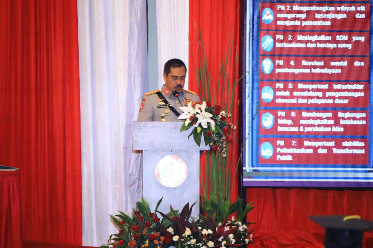 Wakapolri Komjen Pol Agus Andrianto membacakan amanat dari Kapolri Jenderal Listyo Sigit Prabowo. Sebelum membacakan pesan dari Kapolri, Agus mengingatkan para wisudawan untuk menjaga kehormatan institusi dan menjadi agen perubahan dalam pelayanan untuk masyarakat.