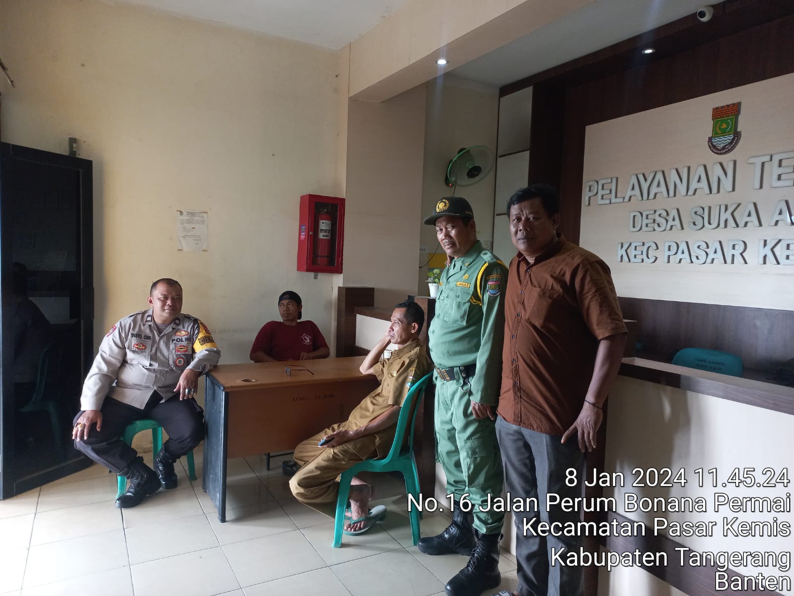Kab. Tangerang – Bhabinkamtibmas Desa Suka Asih, Polsek Pasar Kemis, Polresta Tangerang Polda Banten, Aiptu Paryanto melaksanakan Cooling System dengan gencar melakukan sambang untuk mengajak warga aktifkan lagi Pos Kamling dan memberikan pesan harkamtibmas menjelang Pemilu 2024 kepada warga Desa Suka Asih, Senin (08/01/2024) pukul 11:50 Wib.
